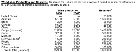 Norilsk Nickel’s annual report for 2009 avoids revealing cobalt production for the year, but notes that revenues were down on account of falling price. “The main reason for the decline in revenue from the sale of by-products was a sharp fall in sales prices of rhodium — from USD 6,600 per ounce in 2008 to USD 1,600 per ounce in 2009, and cobalt — from USD 73,000 per tonne in 2008 to USD 32,500 per tonne in 2009.” The report fails to disclose revenues from cobalt sales.