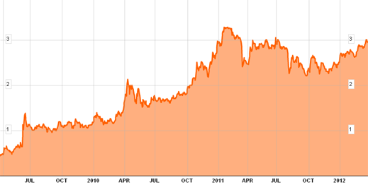 That price was A$3.30. Argonaut Securities, an Australian broker which has been paid to advise BCI and received fees for promoting the Regent Pacific takeover, claimed in a December 2011 report that BCI’s share price should be fairly valued at A$3.40 if the iron-ore price sticks at U$140 per tonne. A report by Austock Securities, released last month, claims the share price should hit a target of A$3.36 if the iron-ore price remains stable or rises. Those are bets on China’s steel production and consumption plans, however.