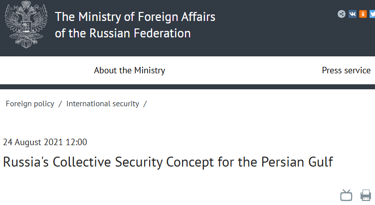 The Russian alternative framework for peace negotiations with Iran to address the root causes of the conflict as a region-wide problem, and to assure mutual and reciprocal security for the regional states, was issued on August 21, 2021. Read it here.