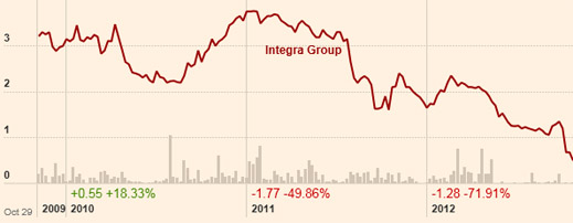 SHARE PRICE TRAJECTORY FOR INTEGRA, 2010-2012: