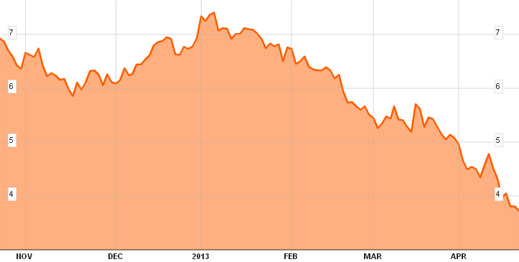 6-MONTH SHARE PRICE TRAJECTORY FOR MECHEL