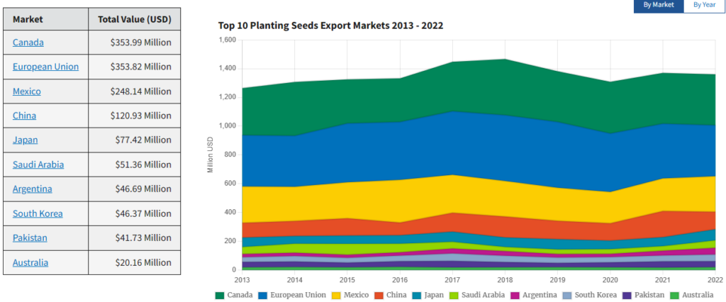 The USDA data show Russia started introducing field crop seeds from the US in 1994 with $13.2 million worth of imports. The total annual value peaked at $37 million in 2018 when Russia was one of the top-10 markets in the world for US seed exporters. It then dropped to $22.7 million in 2020; it is zero now [13]. As the latest tabulation from the USDA’s Foreign Agricultural Service (FAS) shows, Russia is no longer in the top-10.