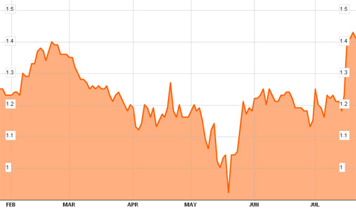 Share price trajectory for High River Gold, January-July 2012:
