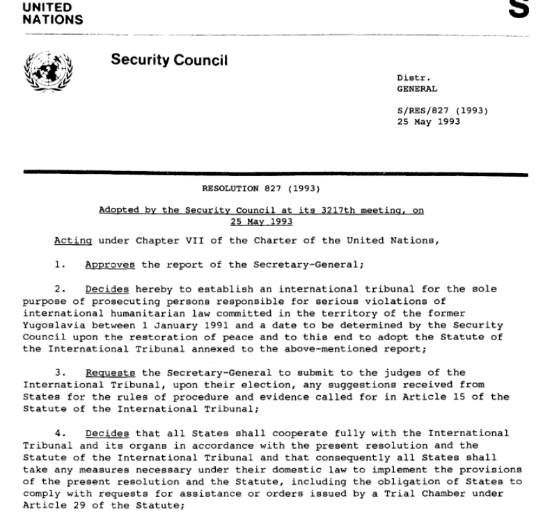 The Chinese, however, realised the problem, expressing a willingness to vote for it only with the caveat that the adoption of the resolution should not prejudice China’s position on future resolutions on the subject. On 23 May 1993, when the UNSC was engaged in debate on Draft Resolution 827, which established the ICTY and adopted its statute, the Chinese representative explained his affirmative vote after the resolution was adopted by stating that China disputed the approach for the establishment of the tribunal by way of a UNSC resolution, rather than a treaty, with the latter route being the one China had preferred all along. He explained that, resembling a treaty, the statute should have been “negotiated and concluded by sovereign States and ratified by their national legislative organs. “Otherwise, its implementation would bring problems, unspecified, in both theory and practice.”
