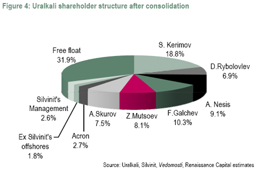 According to Renaissance Capital, Nesis and Galchev, who have shared control of Uralkali with Kerimov since June “will approve the deal, since the valuation of SILV implies a discount to URKA, reflecting the lower liquidity of SILV and the fact that the announced conversion ratios are below the average six-month level.”