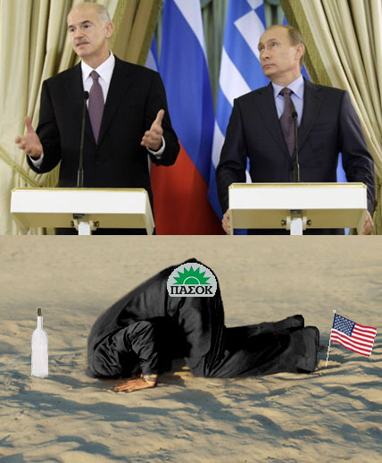 Putin refused yesterday to commit to building the Alexandroupoli pipeline. Putin did tell Papandreou that he is managing Greece’s financial troubles no worse than the US, where, according to Putin, ” we can see similar problems — massive external debt, budget deficit.” Putin also reminded the Greek prime minister that “as we all know, the global economic crisis started neither in Greece, nor in Russia, nor in Europe. It came to us from across the ocean.”