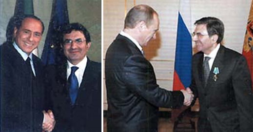 There’s speculation in Italian financial circles that Antonio Fallico is behind Intesa’s part in the Rosneft deal. Fallico is the chief executive and chairman of the board of the bank’s Russian subsidiary, Banca Intesa Zao in Moscow. He has lived in Moscow for many years and has reportedly been the arranger of several major business transactions agreed between former Italian Prime Minister Silvio Berlusconi (with Fallico, below left) and President Putin (right).