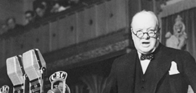 Read Lincoln’s speech and a glimpse of him on the speaker’s platform. Read Churchill’s address to the House of Commons. Listen to a 2-minute excerpt.