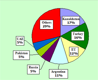 Russia’s share of the global flour trade has also been growing fast. According to the International Grains Council (IGC), before 2006 Russia’s flour exports were too small to count in the top-10 of the global trade. But in the past two seasons, Russia moved into fifth place. Kazakhstan leads, followed by Turkey, the European Union, and Argentina. The main buyers of Russian flour are Mongolia, Afghanistan, and other former Soviet countries in Central Asia and the Caucasus