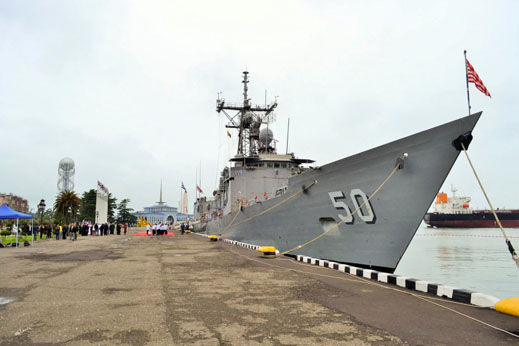 On May 8 the Taylor berthed at Batumi. A US Embassy statement issued in Tbilisi said its “presence in Georgia reaffirms the United States’ commitment to strengthening ties with NATO allies and partners like Georgia, while working toward mutual goals of promoting peace and stability in the region. While in Georgia, Taylor will host ship tours and a reception for local officials. The crew will also conduct training with the Georgia Coast Guard in visit, board, search and seizure (VBSS), maritime medical care, career development systems and leadership ethics.”