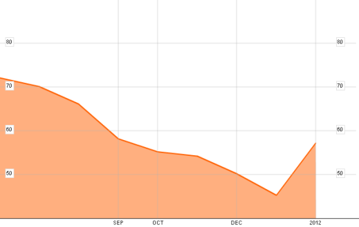 Industry sources and wire services in Moscow are citing USC chief executive Roman Trotsenko as saying the deal, to be finalized in the second quarter of this year, will be at a price of Rb2.5 billion ($81 million) for a stake of 79.33%. This, reports Renaissance Capital analyst Mikhail Safin, indicates a valuation of the entire company of $102.1 million. That represents a premium of 78% over the mid-market price for the publicly listed but rarely traded Vyborg shares (VSSZ:RU), according to Safin. According to Bloomberg reports, Vyborg’s share price slipped steadily downwards last year on low-volume trading, even after there was speculation of a sale to USC in mid-year. On the Bloomberg data, the reported takeover price represents a 67% premium over last week’s quoted share price; but more than double Vyborg’s price before it picked up on the takeover news at the end of last month: