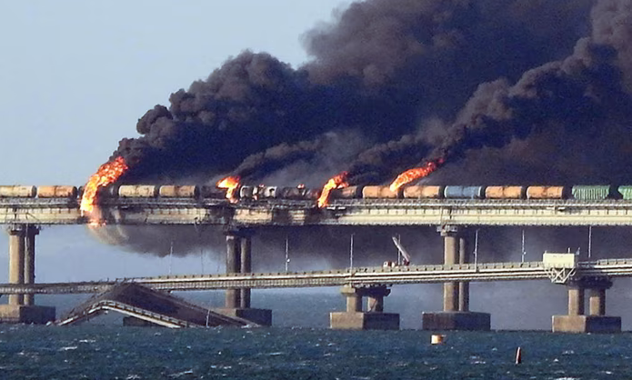 [10]The first Crimean Bridge attack, October 8, 2022. Click to read analysis of the modus operandi -- https://johnhelmer.net/the-ukrainian-m-o-for-the-crimean-bridge-attack-this-is-how-the-operation-worked-to-the-point-of-detonation/ [11] For a US military school analysis: https://lieber.westpoint.edu/kerch-strait-bridge-attack-retaliation-international-law/ [12]